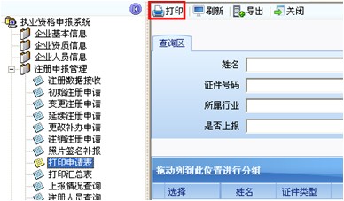 3、在线发送完成后,点击“打印申请表”模块,即可在此模块中找到刚才上报的变更记录,点击“打印”,即可打印带条码的申请表,如图10-9-2: