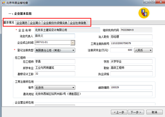 4、点击“下一步”,在第一项“企业基本信息”中核实企业“基本情况、企业简历、企业简介、企业股份外资情况表”信息(如图20-79):