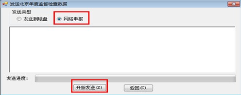 3、点击确定,弹出发送类型窗口,选择“网络申报”再点击“开始发送”即可,最后提示发送成功(如图20-86):