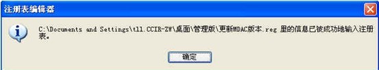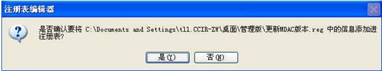 1. 点击更新MDAC版本.reg文件,弹出如下提示信息